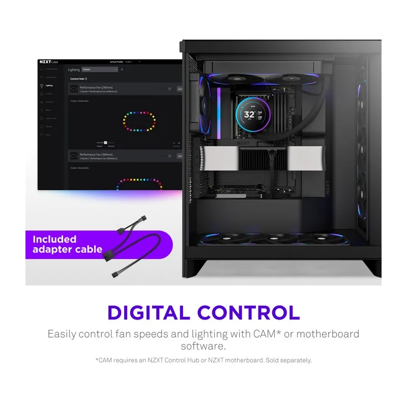 Fabricado con polímero de cristal líquido (LCP) y caucho, el Ventilador NZXT F280X RGB Negro ofrece una estructura sólida que minimiza las vibraciones y prolonga la vida útil del componente. Su rodamiento dinámico fluido (FDB) reduce el desgaste mecánico y permite un funcionamiento más silencioso, incluso a altas velocidades. Con un nivel de ruido máximo de 41 dB, este ventilador mantiene un equilibrio ideal entre potencia y silencio. Además, su velocidad de 2400 RPM y su flujo de aire de 116 cfm garantizan que el sistema se mantenga fresco en todo momento. La combinación de materiales de alta calidad y tecnología avanzada convierte al Ventilador Nzxt F280X en una inversión segura para usuarios exigentes que valoran tanto el rendimiento como la durabilidad.