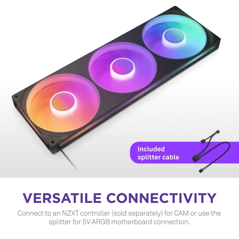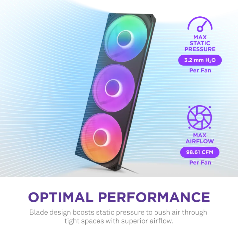 Ventiladores Suplementarios NZXT F420RGB RF-U42HF-B1 con flujo de aire 98,61 CFM y presión estática 3,2 mm H2O, rendimiento eficiente