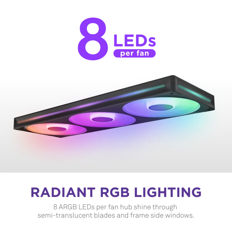 ILUMINACIÓN RGB Y CONTROL TOTAL EN UN SOLO CONECTOR: Los Ventiladores Suplementarios NZXT F420RGB RF-U42HF-B1 no solo destaca por su rendimiento, sino también por su estética y facilidad de integración. Cada ventilador cuenta con 8 LED RGB que permiten una personalización visual total, ideal para sistemas con paneles transparentes. A través de un único conector de 8 pines, se controla tanto el PWM como la iluminación RGB, simplificando la instalación y el cableado. Además, el flujo de aire 98,61 CFM y la presión estática 3,2 mm H2O garantizan que, más allá del aspecto visual, el rendimiento térmico no se vea comprometido. Esta solución combina funcionalidad, diseño y eficiencia en un solo producto.