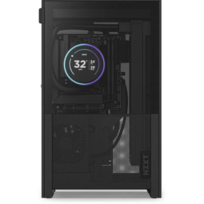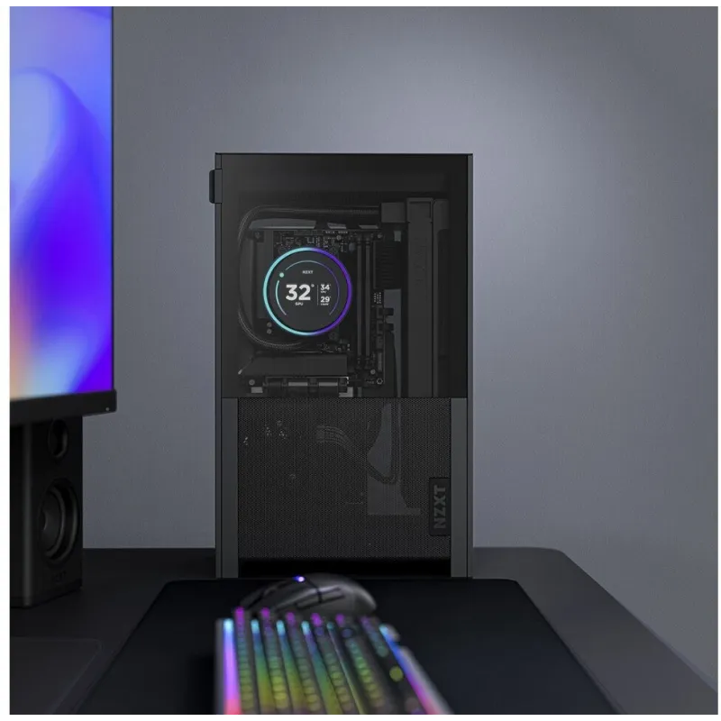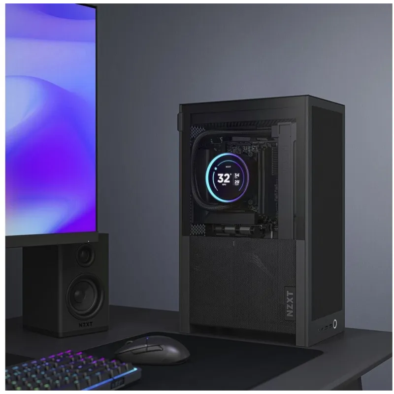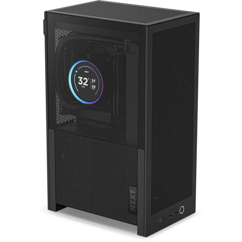 La NZXT H2 Flow es una caja Mini-ITX SFF vertical pensada para setups compactos donde quieres un PC con presencia, pero sin invadir la mesa. El formato estrecho (20,7 L) y el riser PCIe 5.0 x16 incluido facilitan montar la GPU en vertical con un interior más limpio y orientado al airflow.
