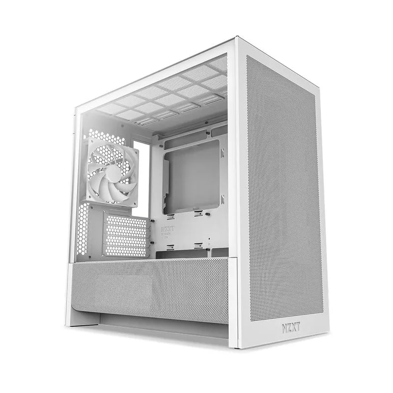 Torre NZXT H3 Flow WH con ventiladores de 120 mm, vidrio templado lateral y diseño blanco compatible con micro ATX