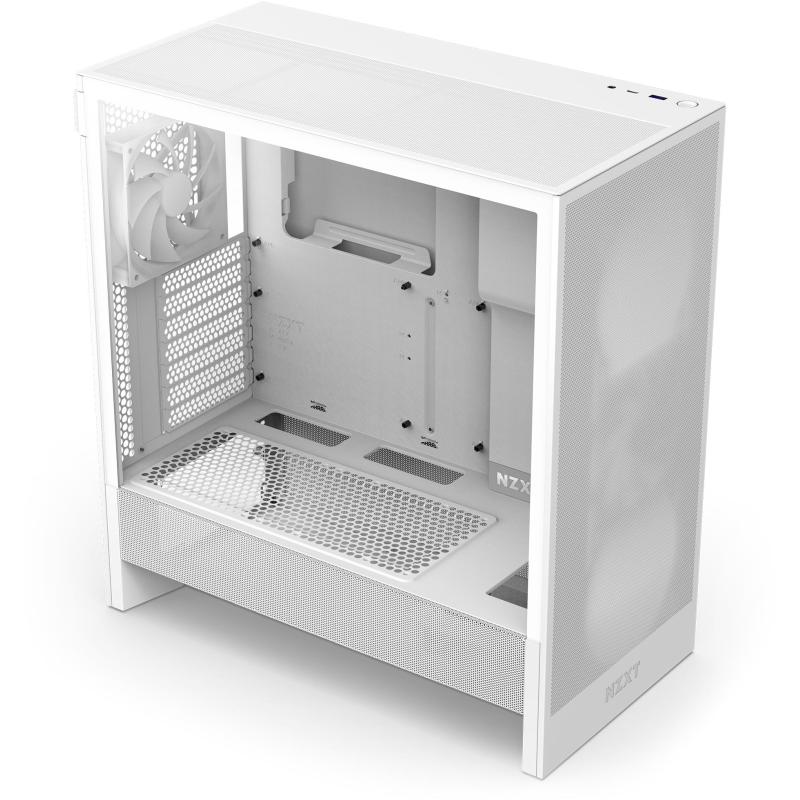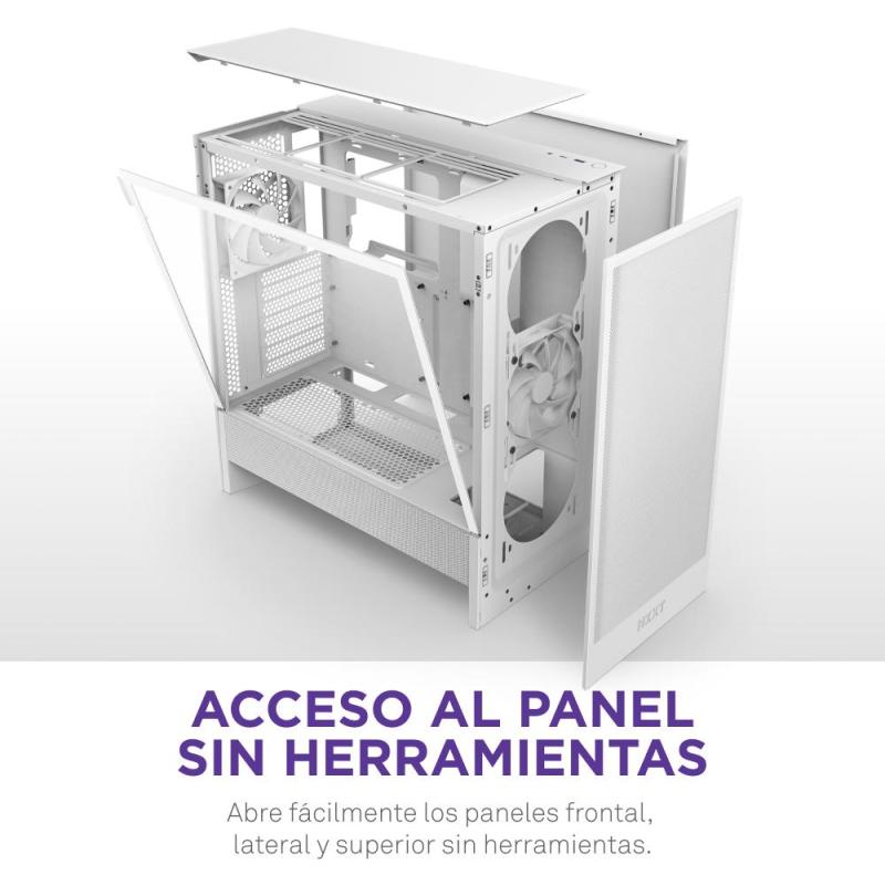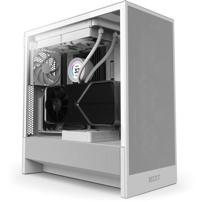 Torre NZXT H5 Flow 2024 diseño con vidrio templado gran flujo de aire gestión de cables y soporte para refrigeración líquida, color Blanco
