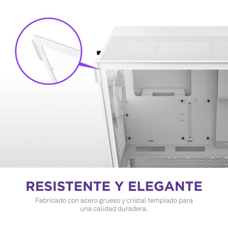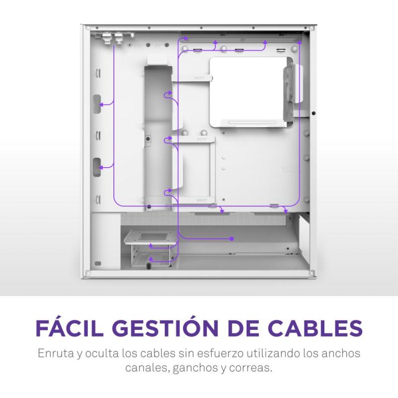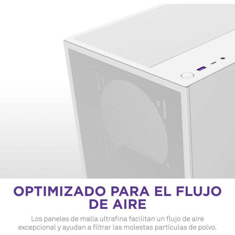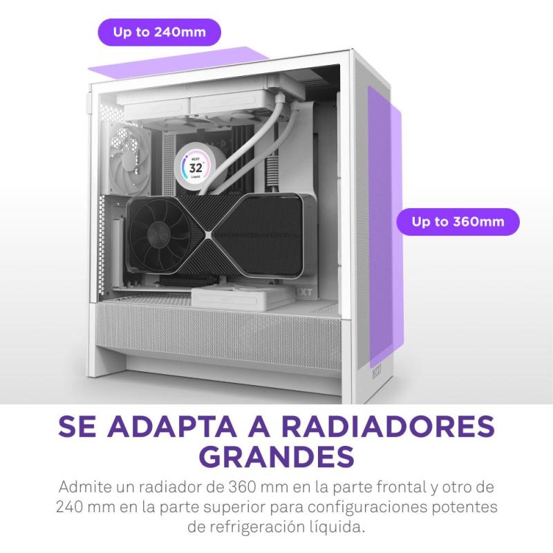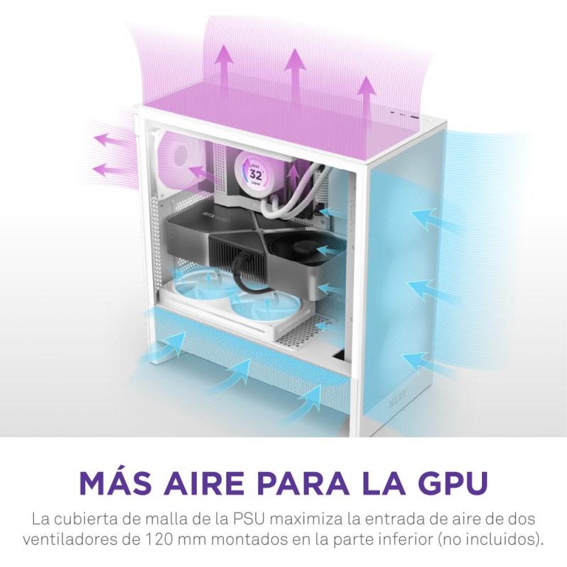 LA H5 FLOW: La H5 Flow aumenta el flujo de aire y la refrigeración de la GPU con su cubierta perforada para la fuente de alimentación, paneles de malla y un gran soporte para el radiador, todo ello en un formato compacto de torre mediana.
