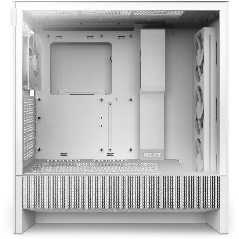 Torre NZXT H5 Flow RGB 2024 ATX E-ATX Micro-ITX diseño en vidrio templado gran flujo de aire iluminación RGB y compatibilidad con refrigeración líquida, color Blanco