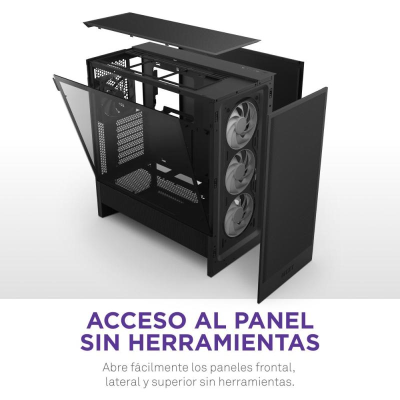 La torre NZXT H5 Flow RGB 2024 es una opción ideal para los entusiastas del gaming y la personalización de PC. Su diseño en panel de vidrio templado permite una vista clara del interior, resaltando la iluminación RGB de los ventiladores. Compatible con placas base ATX, EATX, micro ATX y Mini-ITX, ofrece una gran versatilidad para distintos tipos de configuraciones. Además, cuenta con una excelente gestión de cables y filtros anti-polvo para mantener el sistema limpio y organizado. Su sistema de refrigeración incluye ventiladores 120 mm preinstalados en la parte frontal y trasera, garantizando un flujo de aire óptimo y eficiente. También es compatible con refrigeración líquida, soportando radiadores de hasta 360 mm en la parte frontal. Con un diseño robusto en SGCC y un color negro elegante, esta torre con ventiladores 120 mm y panel de vidrio templado combina estética y funcionalidad en un solo producto.