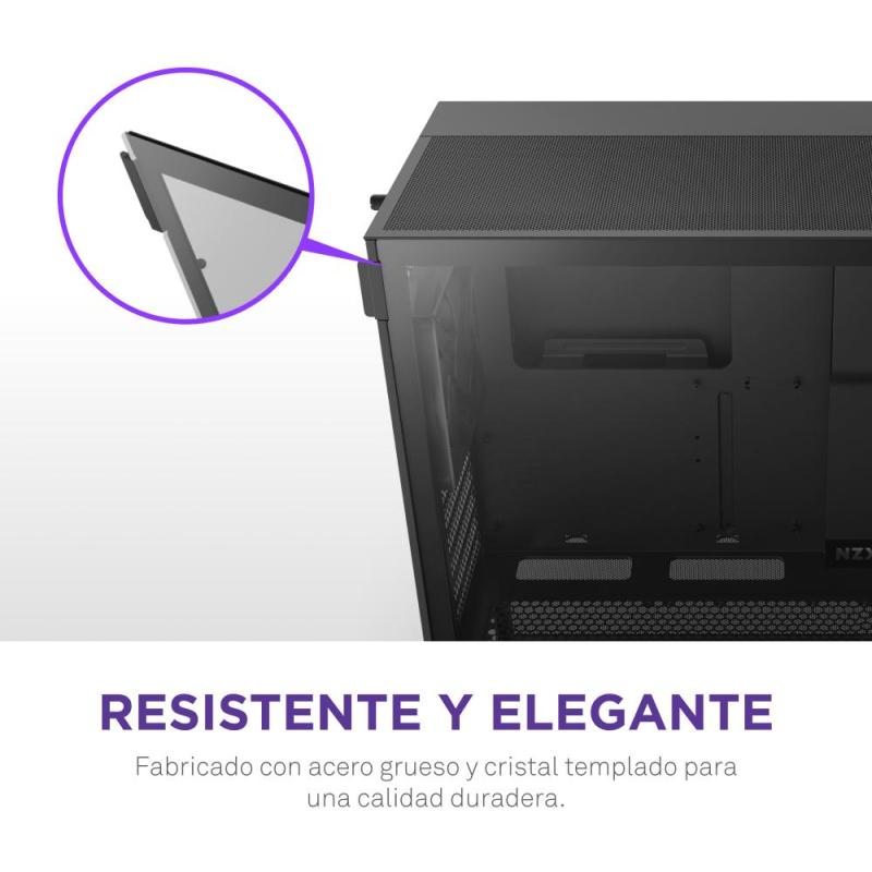 DISEÑO MODERNO CON PANEL DE VIDRIO TEMPLADO: La torre NZXT H5 Flow RGB 2024 incorpora un elegante panel de vidrio templado que permite exhibir los componentes internos con un acabado sofisticado. Este material no solo aporta un aspecto premium, sino que también proporciona resistencia y durabilidad. Su estructura en SGCC asegura una construcción sólida, mientras que su diseño optimizado facilita la gestión de cables, manteniendo un interior ordenado y libre de desorden.