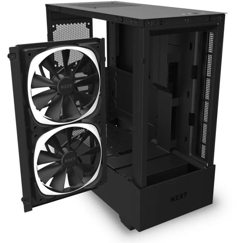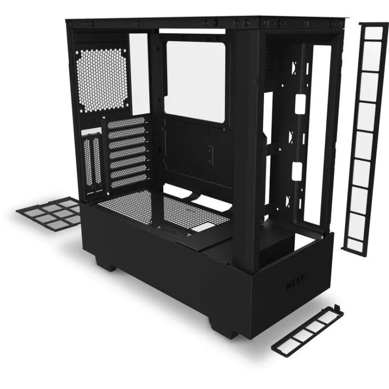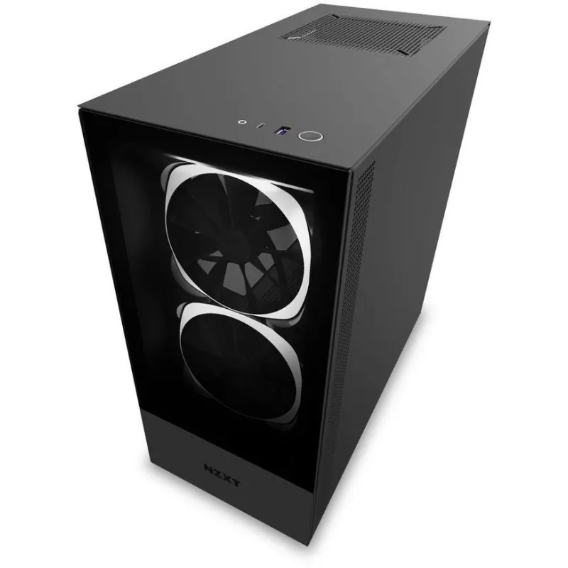 EL H510 ELITE COMPACTO ATX MID-TOWER ES PERFECTO PARA TU CONSTRUCCIÓN RGB: El H510 Elite compacto ATX mid-tower es perfecto para tu construcción RGB. Detrás del panel frontal de vidrio templado montado al ras, descubrirás nuestros renombrados ventiladores Aer RGB 2 manteniendo tus componentes brillantemente frescos. Flujo de aire bien diseñado, soporte de montaje de radiador desmontable, múltiples filtros de ventilador, montaje vertical de GPU, un conector USB-C en el panel frontal y una construcción completamente de acero y vidrio templado son solo algunas de las características clave que obtendrás. El H510 Elite también incluye el NZXT Smart Device V2, que alimenta las tiras de luz RGB integradas y los ventiladores de la caja.
