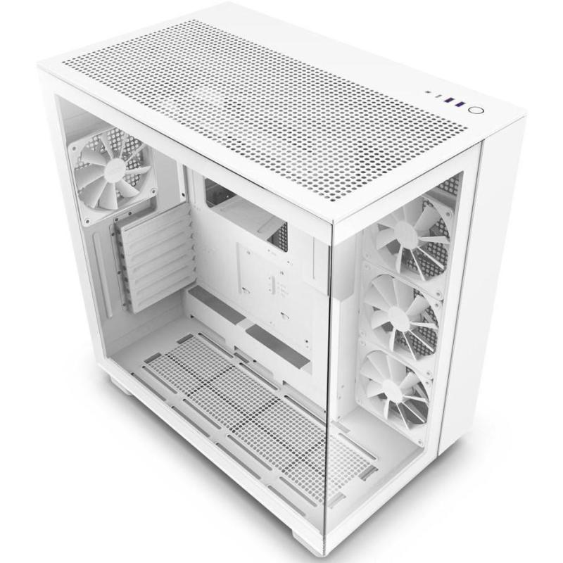 NZXT H9 Flow Cristal Templado USB 3.2 4 Ventiladores Trasero y Laterales Instalados Blanca