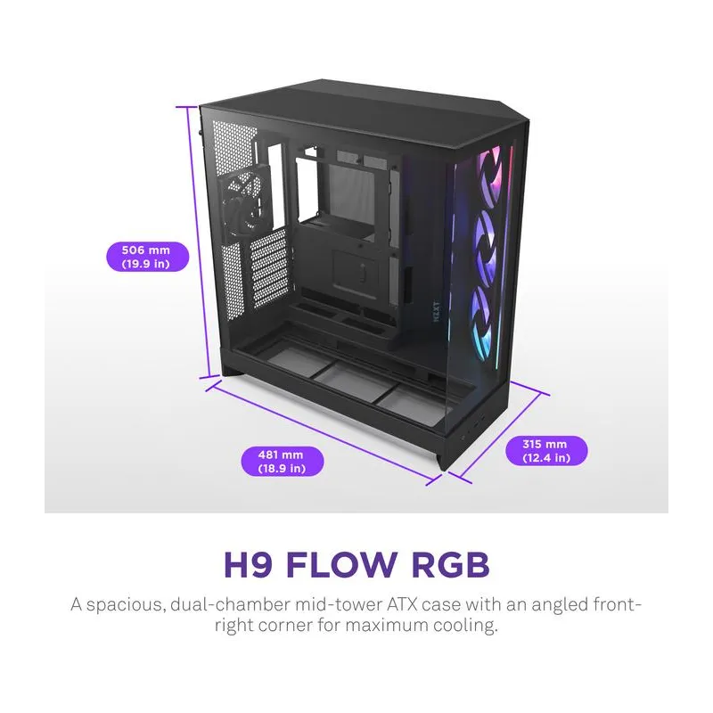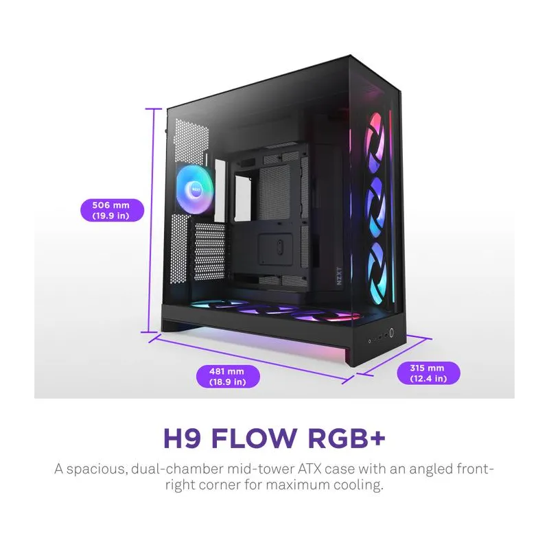 NZXT H9 Flow RGB+ BK Midi Tower Cristal Templado USB 3.2 Negro