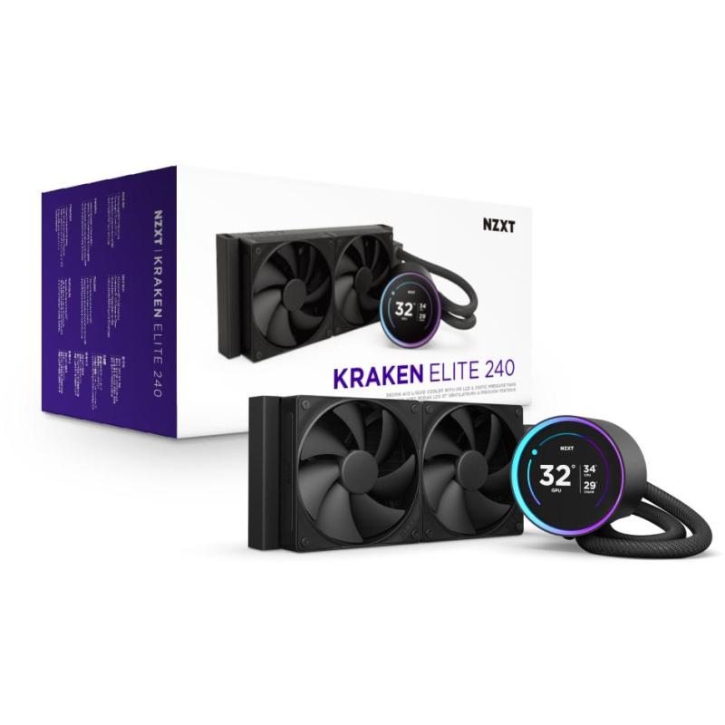 Refrigeración Líquida NZXT Kraken Elite 240 con pantalla LCD 2 ventiladores de 12 cm bomba de 2800 RPM y compatibilidad Intel/AMD, color Negro