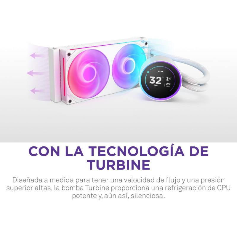 DE VUELTA Y MEJOR QUE NUNCA: El Kraken Elite está impulsado por la bomba Turbine de diseño personalizado de NZXT, ofreciendo un notable aumento del 10%* en el rendimiento de refrigeración de la CPU. La impresionante pantalla IPS de 2.72 pulgadas con un anillo RGB dinámico ofrece opciones de personalización ilimitadas, haciendo del Kraken Elite un punto focal llamativo para cualquier construcción.