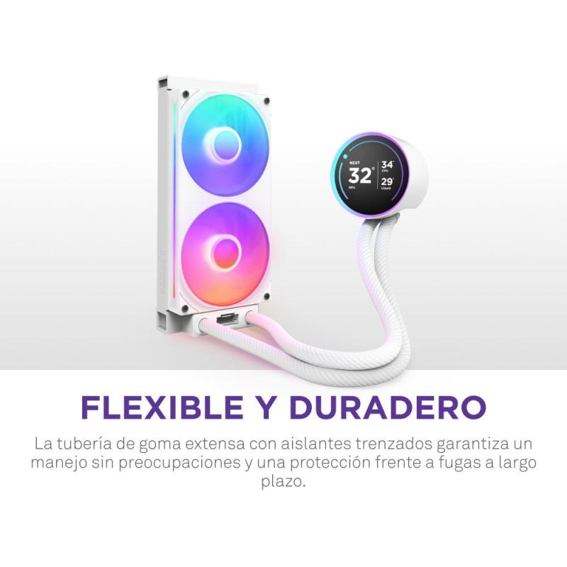 El refrigeración líquida NZXT Kraken Elite 240 RGB es una solución avanzada de refrigeración líquida 240mm diseñada para ofrecer un rendimiento térmico excepcional. Con un radiador de aluminio de 240mm y dos ventiladores de 120mm, garantiza una disipación eficiente del calor, manteniendo temperaturas óptimas incluso en cargas intensas. Su compatibilidad con sockets Intel y AMD lo hace versátil para diversas configuraciones.
