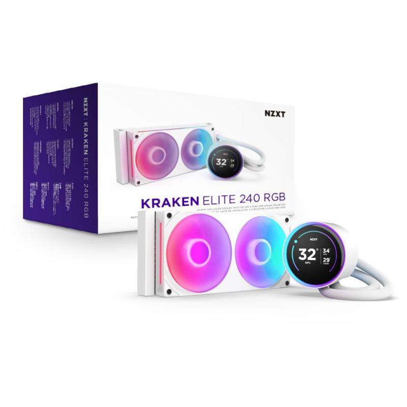 Refrigeración Líquida NZXT Kraken Elite 240 RGB potente con pantalla LCD LED RGB 2 ventiladores de 12 cm y compatibilidad con Intel y AMD, color Blanco
