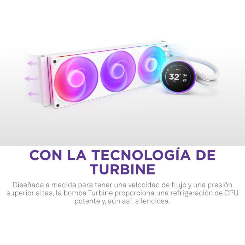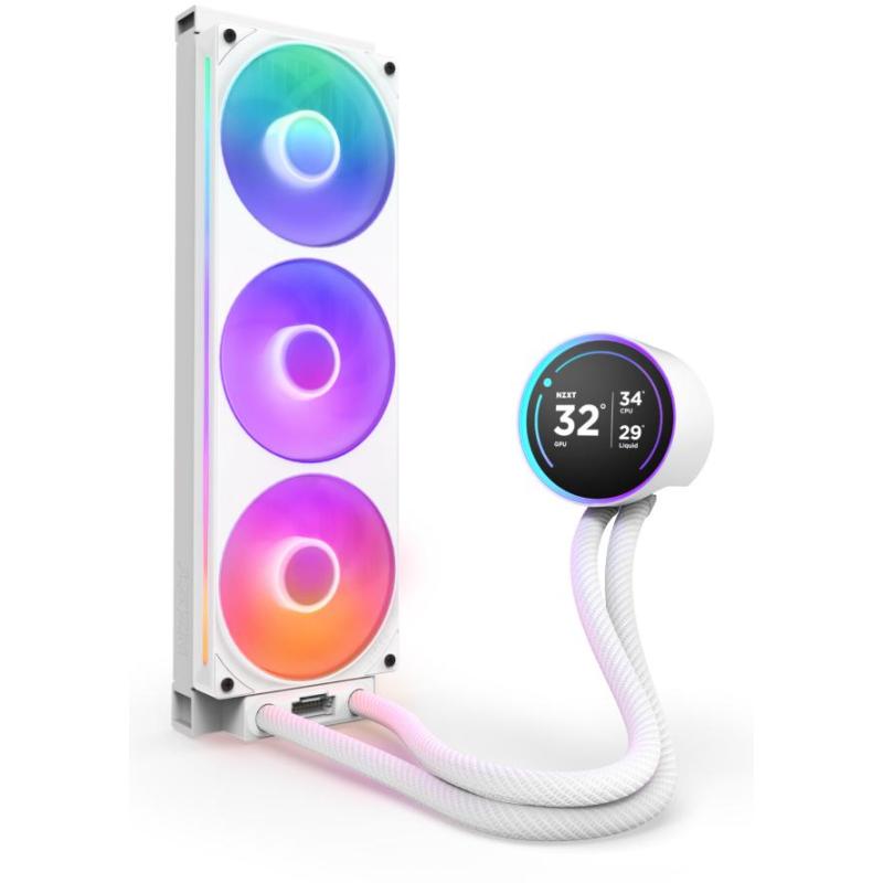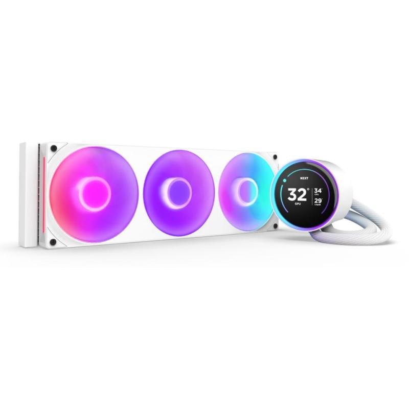 Refrigeración Líquida NZXT Kraken Elite 360 RGB disipador líquido con pantalla LCD 3 ventiladores de 12 cm iluminación RGB y compatibilidad con Intel y AMD, color Blanco