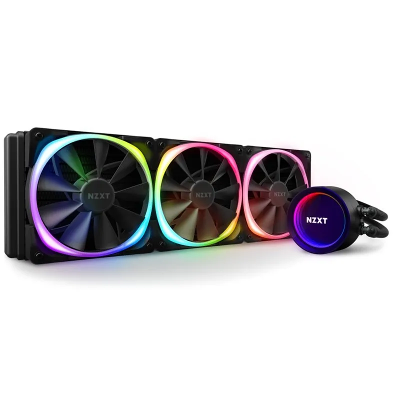 El disipador dispone de tres ventiladores Aer RGB 2 de 120 mm incluidos y una bomba mejorada. También cuenta con un conector RGB NZXT para accesorios RGB NZXT y está alimentado por CAM V4.