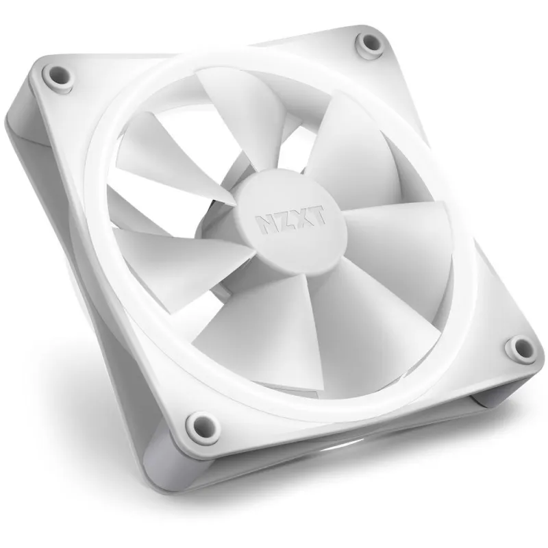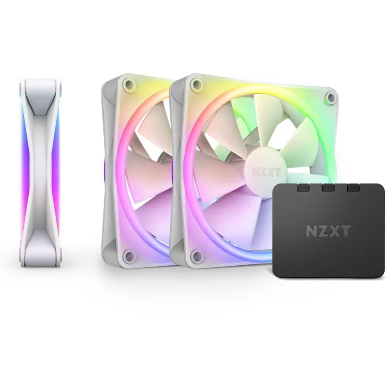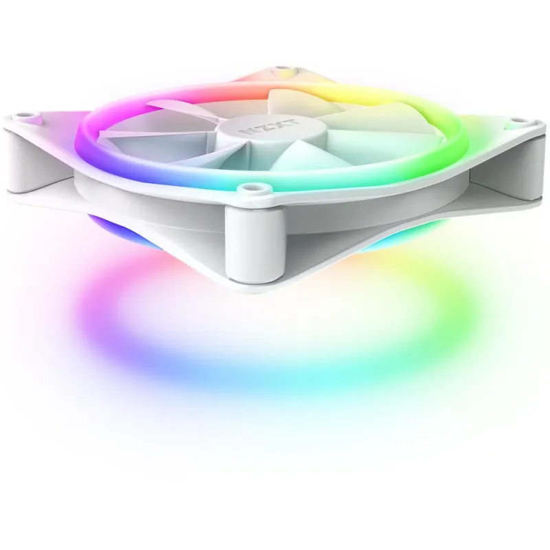 Ventilador NZXT RF-D12TF-W1 con flujo de aire 48,58 cfm, velocidad de rotación 1800 RPM y 20 LED multicolor por unidad. Pack de 3 unidades en color blanco.