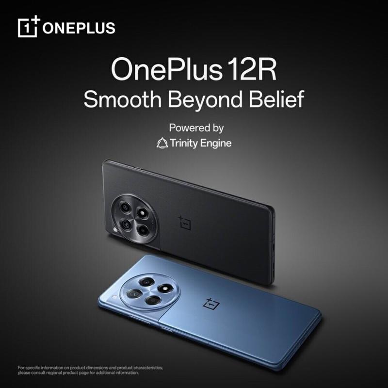 Smartphone OnePlus 12R con pantalla AMOLED 120 Hz de 6.78" Snapdragon 8 Gen 2 16GB RAM 256GB cámara triple de 50MP y batería 5500 mAh con carga rápida.