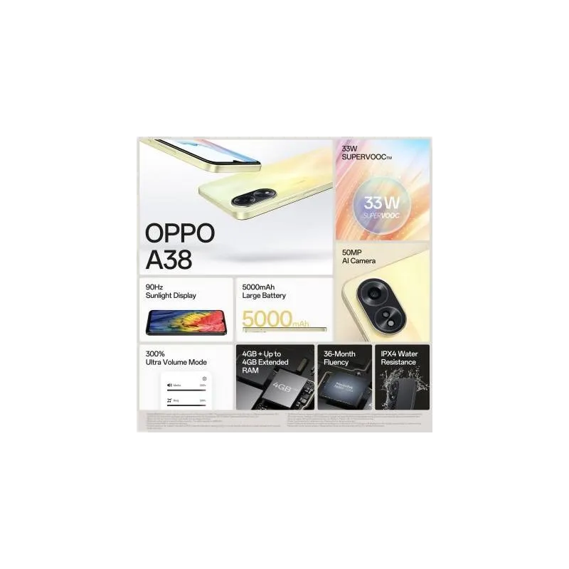DESCUBRE EL PODER DEL RENDIMIENTO: Olvídate de los smartphones lentos y limitados. El nuevo smartphone de OPPO te sorprende con un rendimiento increíble gracias a su procesador MediaTek Helio G85 de ocho núcleos, que alcanza una velocidad de hasta 2 GHz. Su memoria RAM de 4 GB, expandible hasta 8 GB, te facilita el uso de varias aplicaciones al mismo tiempo sin interrupciones. Y su almacenamiento interno de 128 GB, expandible hasta 1 TB con una tarjeta microSD, te da la capacidad suficiente para almacenar todos tus archivos, fotos y vídeos.