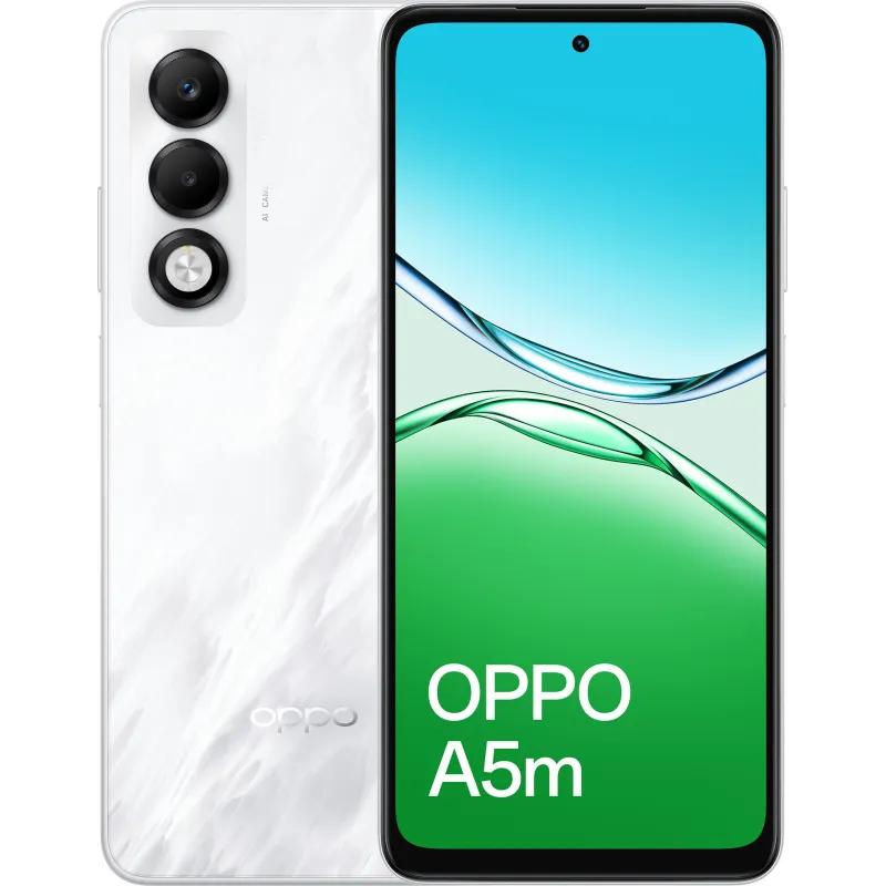 Smartphone OPPO A5m 8/256GB Blanco con pantalla de 6.67 pulgadas, batería de 6000mAh y procesador Snapdragon 6s 4G
