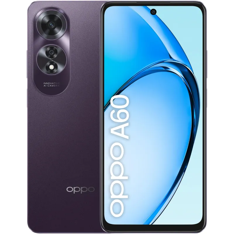 Smartphone Oppo A60 8/256GB Morado + Cargador 45W con procesador Snapdragon 680, pantalla LCD 6.67 pulgadas y almacenamiento ampliable hasta 1 TB