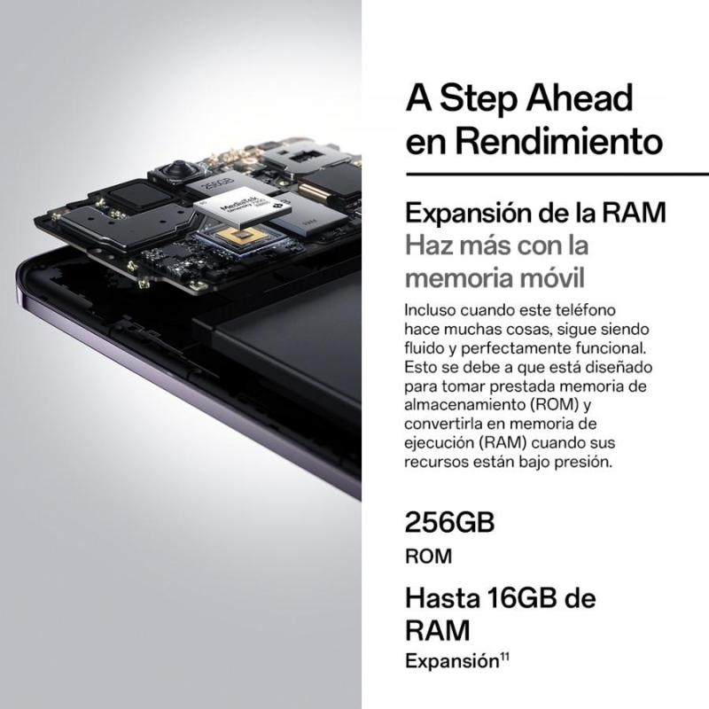 ALMACENAMIENTO AMPLIO, MEMORIA EXPANDIBLE: Con 8 GB de RAM LPDDR4X y una capacidad de almacenamiento interno de 256 GB, podrás guardar todo lo que necesitas sin preocuparte por el espacio. Además, la expansión de memoria RAM hasta 8 GB adicionales y la compatibilidad con tarjetas MicroSD de hasta 1 TB ofrecen flexibilidad y capacidad de sobra para tus archivos, aplicaciones y medios. Mantén todo al alcance de tu mano, desde documentos importantes hasta tus fotografías y videos favoritos.