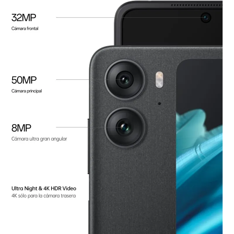 RENDIMIENTO QUE NO TE DEJA TIRADO: Su procesador MediaTek Dimensity 9000+ te ofrece un rendimiento fluido y eficiente, capaz de ejecutar las aplicaciones más exigentes sin problemas. Su memoria RAM de 8 GB y su almacenamiento interno de 256 GB te dan espacio de sobra para guardar todos tus archivos y datos. Y su batería de 4300 mAh con carga rápida SuperVOOC 2 de 44 W te asegura una autonomía duradera y una recarga rápida cuando lo necesites.