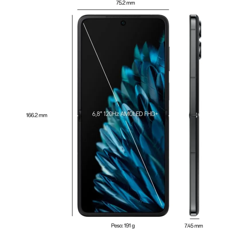 UN MUNDO DE POSIBILIDADES EN TU BOLSILLO: ¿Te imaginas tener una pantalla grande y envolvente que se pliega para caber en cualquier sitio? Con el nuevo smartphone plegable de OPPO, puedes disfrutar de una experiencia visual única y cómoda, gracias a su diseño tipo concha y su bisagra líder en el sector. Elige el ángulo que quieras y deja que el modo FlexForm te permita hacer dos cosas a la vez, como ver una serie, hacer una videollamada o tomar una foto. Y si quieres más espacio, despliega la pantalla principal de 6,8 pulgadas con frecuencia variable LTPO y 120 Hz de refresco, y sumérgete en los colores vibrantes y los detalles nítidos.