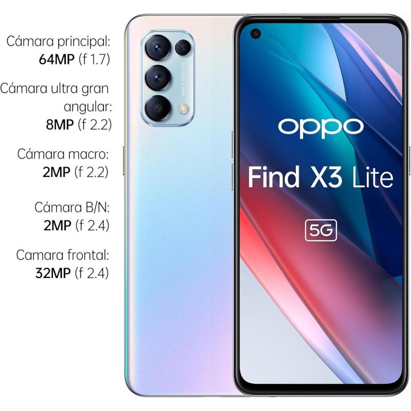 PREPARADO PARA LA RED 5G: El Find X3 Lite funciona con Qualcomm® Snapdragon™ 765G y es compatible con bandas 5C€. También ofrece 8 GB de RAM para un rendimiento fluido y una autonomía impresionante, más 128 GB de almacenamiento interno.