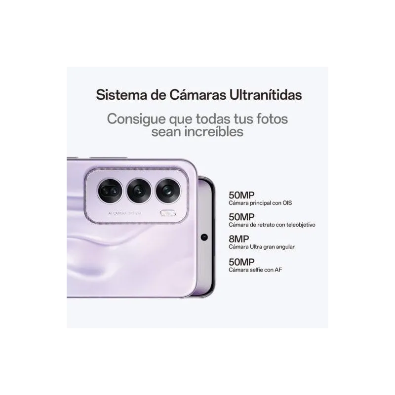 Captura cada momento con la triple cámara trasera de 50 MP, 8 MP y 2 MP, equipada con estabilización óptica de imagen (OIS), modo noche y modo retrato para fotos perfectas en cualquier situación. La cámara frontal de 32 MP también incluye flash y modo de lapso de tiempo, asegurando selfies impresionantes.