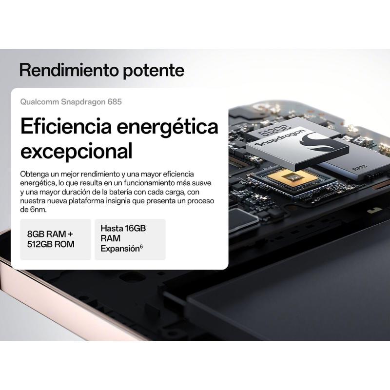 Equipado con un potente procesador Snapdragon 685 de 2,8 GHz y 8 GB de RAM (expandibles a 16 GB), este smartphone ofrece un rendimiento fluido y eficiente, ideal para multitareas y aplicaciones exigentes. Además, su generoso almacenamiento interno de 512 GB expandible hasta 2 TB con MicroSD, te permite guardar una gran cantidad de contenido sin preocuparte por el espacio.