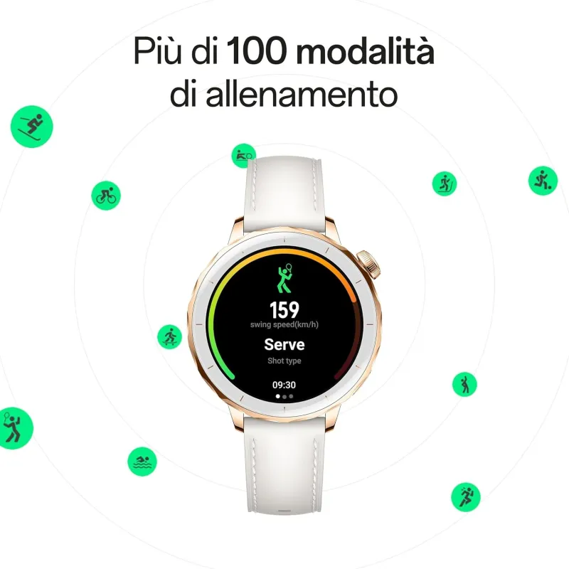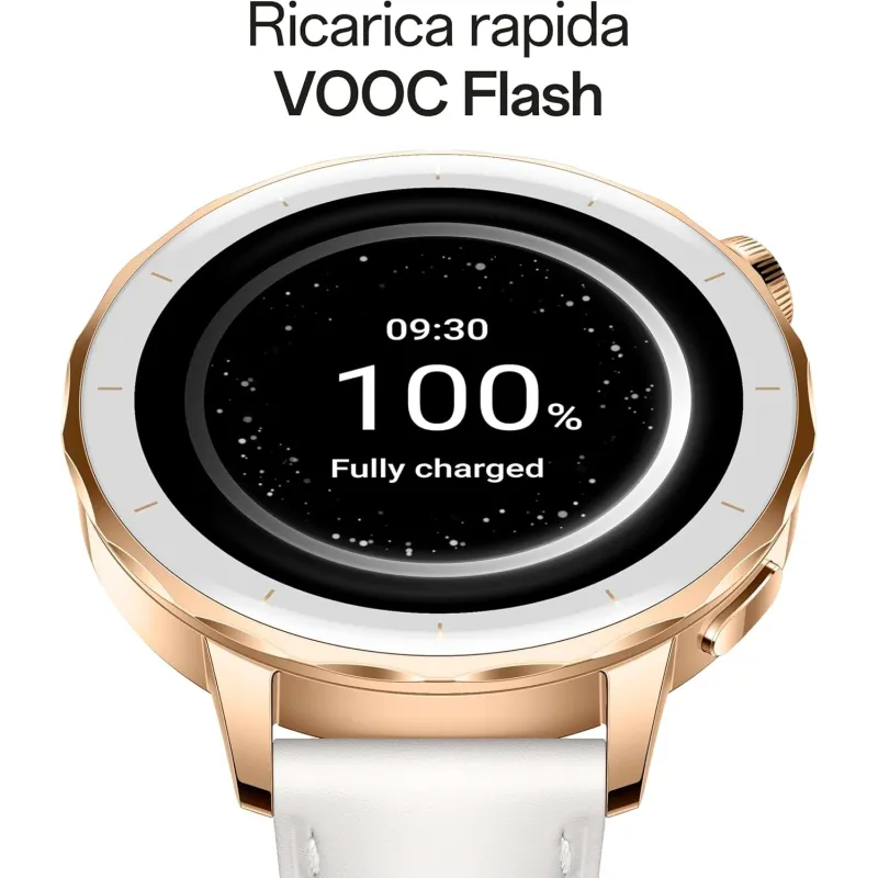 El Smartwatch OPPO Watch X2 Mini Glimmer Gold destaca por su sofisticado diseño en dorado, con cuerpo de acero inoxidable y correa de imitación piel blanca. Su formato redondo y tamaño de 43,2 mm lo hacen cómodo y estilizado, ideal tanto para el uso diario como para eventos formales. Además, su pantalla AMOLED 1.32 pulgadas ofrece una experiencia visual vibrante y nítida, con resolución 466 x 466 píxeles y un brillo de 1000 cd/m². Esta combinación de estética y funcionalidad lo convierte en un accesorio versátil que se adapta a cualquier estilo y situación.