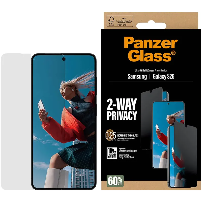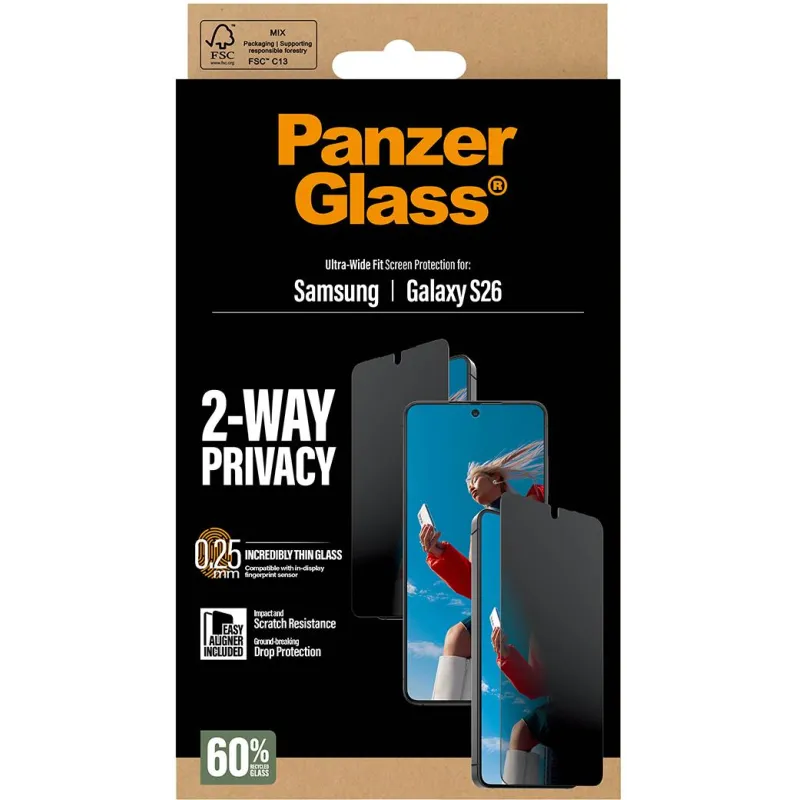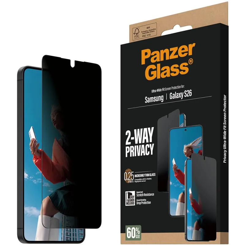 PanzerGlass PG14940 2-Way Privacy Screen Protector Samsung Galaxy S26 | Ultra-Wide Fit w. EasyAligner