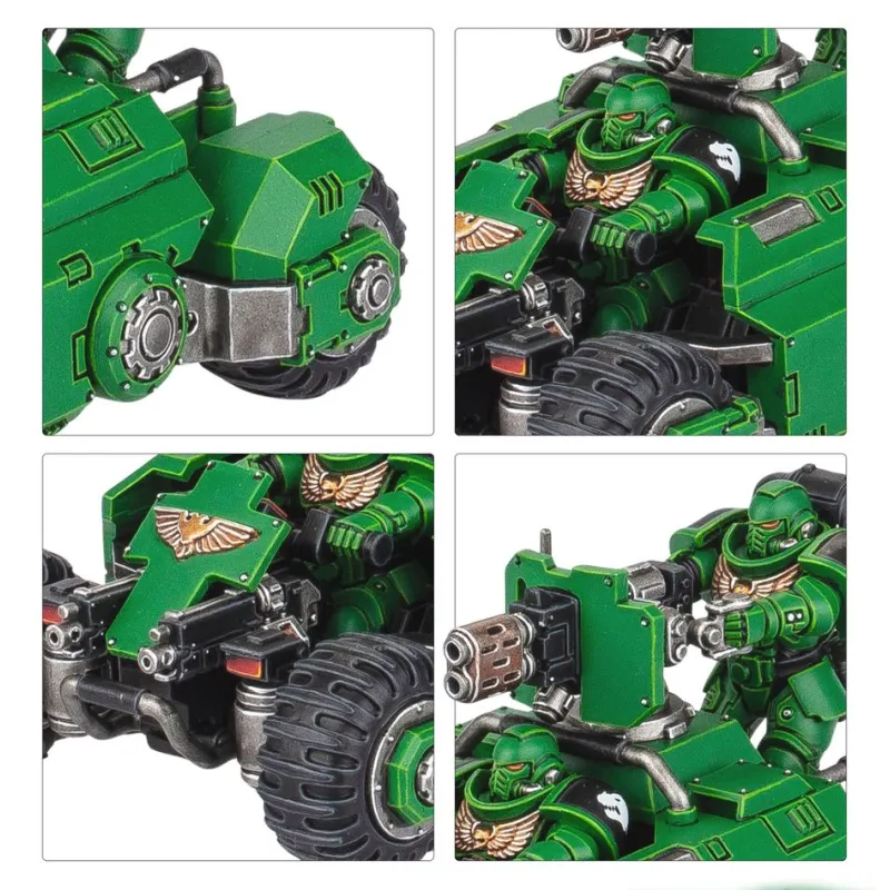El Quad Invader incluido en la Patrulla: Salamanders añade una dimensión táctica clave al conjunto. Esta unidad proporciona velocidad y potencia de fuego móvil, ideal para flanquear al enemigo o controlar objetivos estratégicos en partidas de Warhammer 40.000. Su sinergia con los Intercesores de Asalto permite ejecutar maniobras ofensivas rápidas y efectivas. Esta versatilidad convierte a la patrulla en una fuerza adaptable a diversos escenarios de combate, lo que la hace especialmente útil tanto para jugadores experimentados como para aquellos que se inician en el formato Patrulla.
