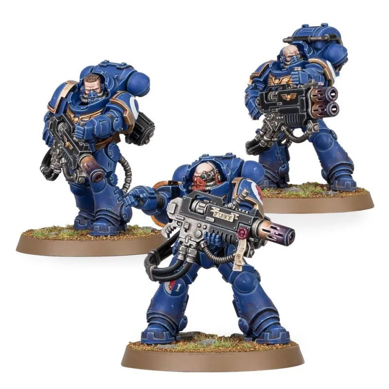 - Personalizaciones Erradicadores: se pueden montar con un sargento opcional, que tiene siete cabezas diferentes a elegir. Cada miembro de la escuadra puede ir armado con un fusil de fusión o un rifle de fusión pesado, y uno de ellos puede equiparse con un cañón de fusión. El kit incluye nueve cabezas en total y varios accesorios intercambiables, como cartucheras, bolsas y sellos de pureza.