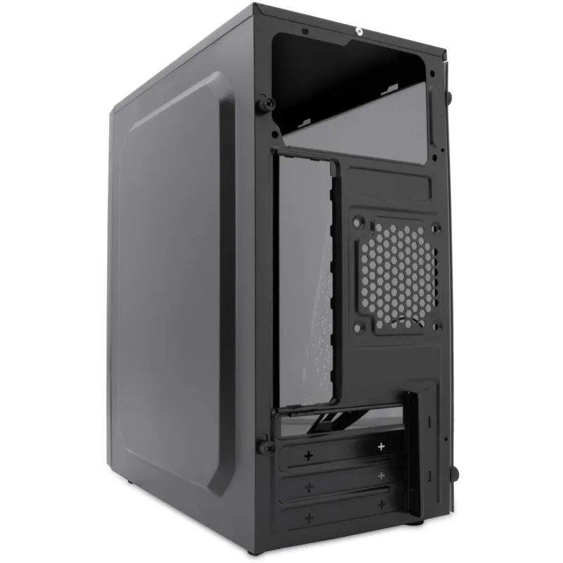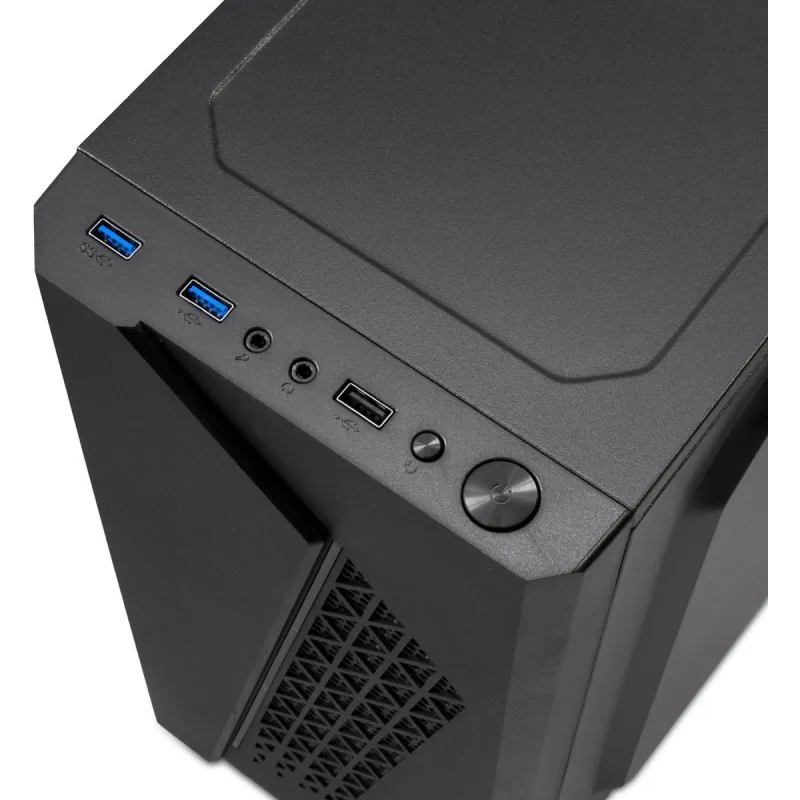 Este equipo no incluye fuente de alimentación, pero es compatible con fuentes de forma ATX ubicadas en la parte superior del chasis. Con unas dimensiones compactas de 190 mm de ancho, 305 mm de profundidad y 355 mm de altura, y un peso ligero de 1.66 kg, es fácil de acomodar en cualquier espacio. El paquete incluye todos los cables necesarios para su puesta en marcha.