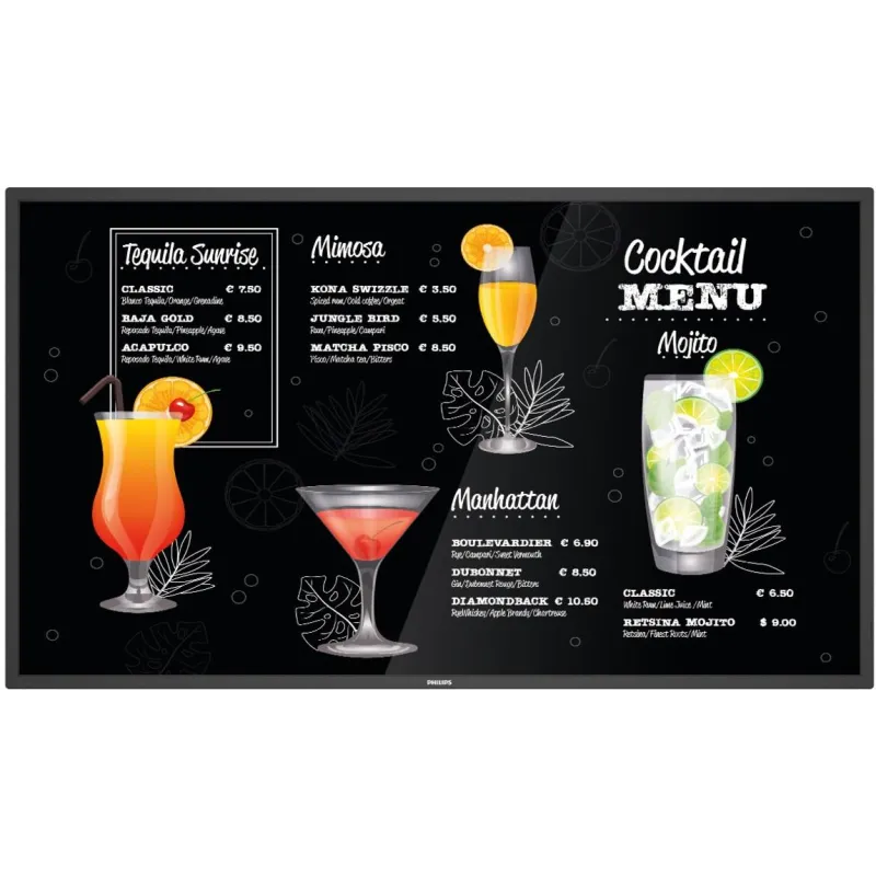 RENDIMIENTO FIABLE PARA USO CONTINUO 24/7: Pantalla Interactiva Philips 50BDL3117P está diseñado para operar de manera ininterrumpida, garantizando un rendimiento fiable en entornos comerciales exigentes. Su eficiencia energética y robustez lo convierten en una solución ideal para negocios que requieren una visualización constante sin interrupciones.