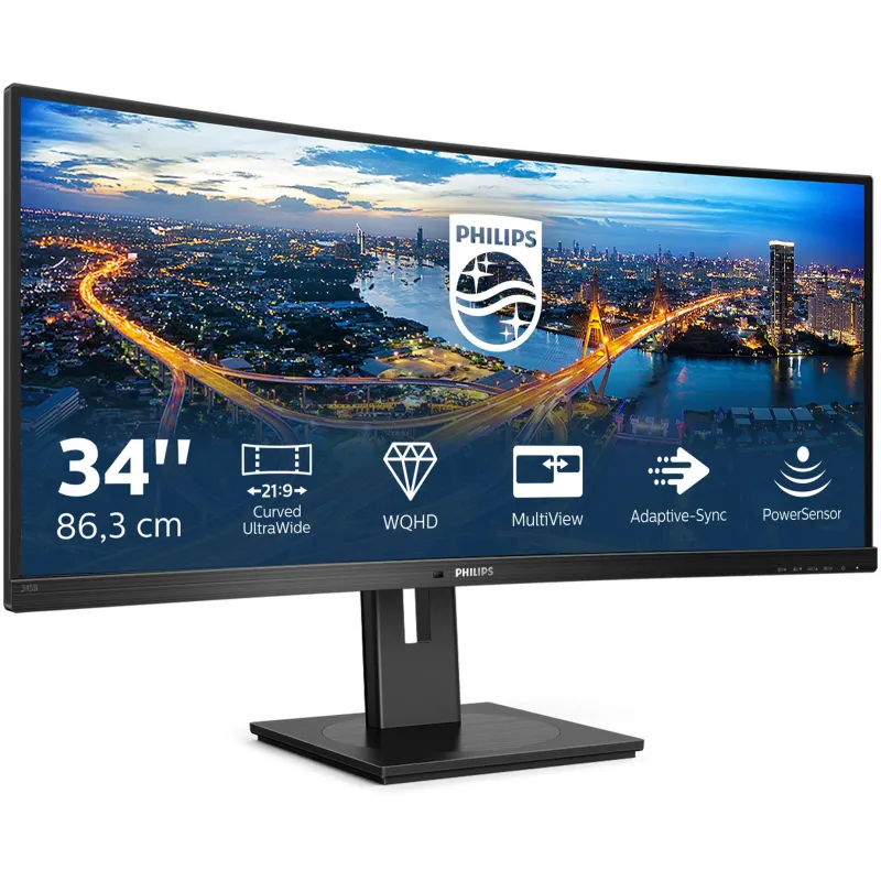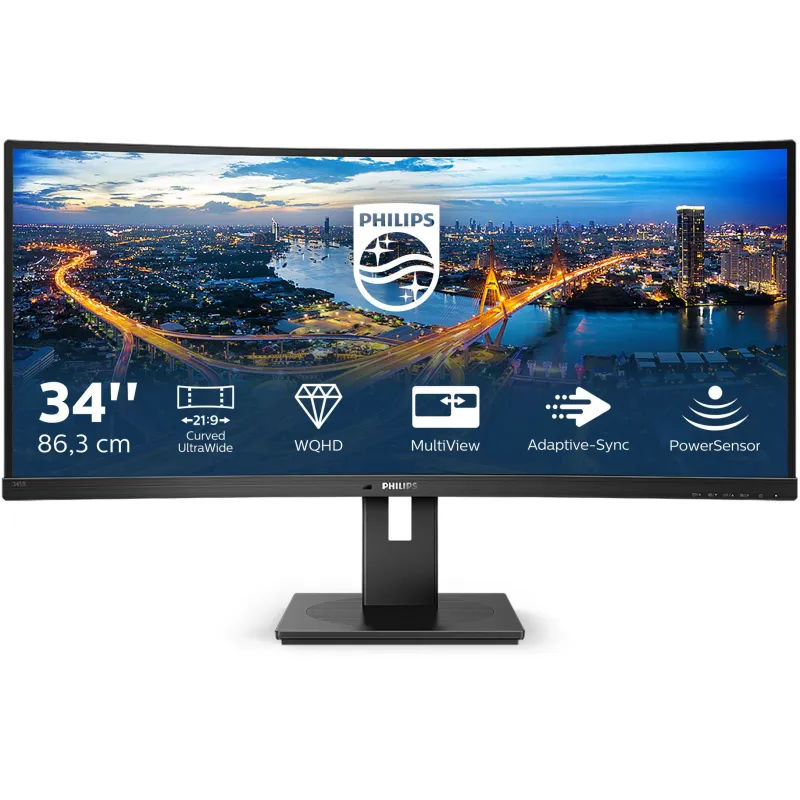Monitor Philips B line 345B1C/00 con pantalla curva 1500R, resolución Quad HD de 34 pulgadas y frecuencia de actualización 100 Hz