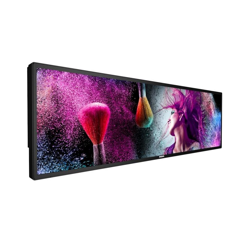 Esta pantalla interactiva Philips S-Line 37BDL3050S/00 profesional de 37 pulgadas redefine la experiencia visual con su pantalla ultrapanorámica Full HD en formato 32:9, ofreciendo una resolución de 1920 x 540 píxeles y un brillo de 700 cd/m² que garantiza imágenes nítidas y vibrantes en cualquier entorno. Diseñado para uso intensivo, su capacidad de funcionamiento 24/7 lo convierte en la elección ideal para aplicaciones comerciales, como señalización digital, presentaciones empresariales o entornos de retail. Su relación de contraste 4000:1 y ángulos de visión amplios de 178° aseguran una calidad visual superior desde cualquier perspectiva.
