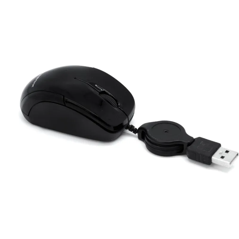 Este ratón óptico compacto de color negro es ideal para aquellos que buscan una solución práctica y eficiente. Con una conexión USB-A, ofrece una compatibilidad universal y una fácil instalación. Su diseño mini, liviano (solo 60 g) y con cable retráctil lo convierte en el accesorio perfecto para quienes valoran la comodidad y la portabilidad. El ratón cuenta con 3 botones que garantizan una experiencia de uso simple y eficiente. Perfecto para usar en cualquier lugar, este dispositivo es una opción ideal para el día a día.