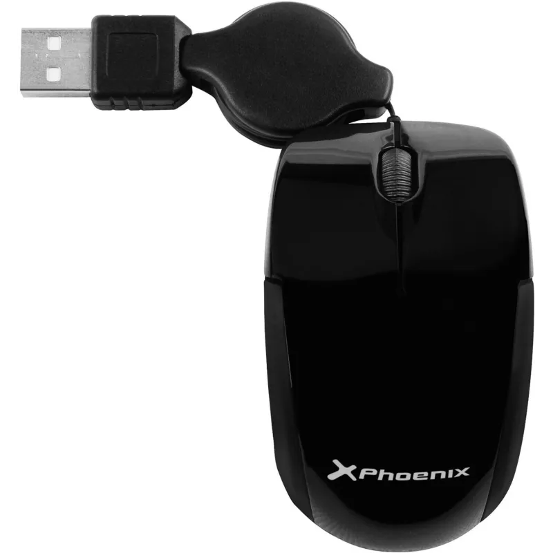 Ratón Phoenix PH1010+ Mini conexión USB, cable retractil, 3 Botones, ratón Óptico, color Negro