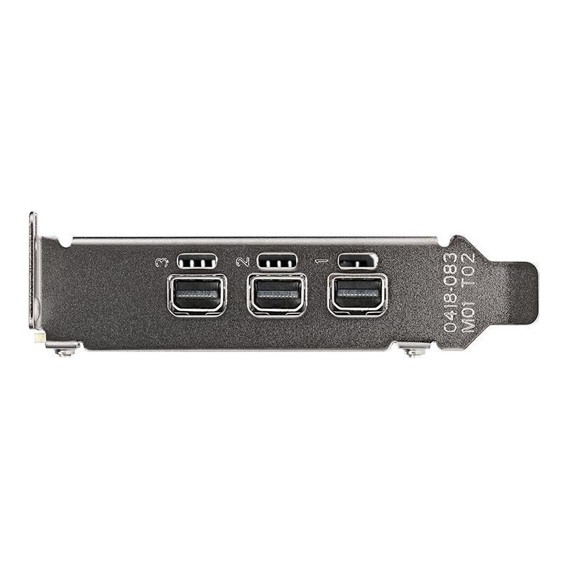 CONECTIVIDAD AVANZADA CON TRES MINI DISPLAYPORT: Equipada con tres puertos Mini DisplayPort 1.4, esta tarjeta gráfica permite la conexión simultánea de hasta tres monitores con una resolución máxima de 7680 x 4320 píxeles. Esto la convierte en una excelente opción para configuraciones de múltiples pantallas, ideales para entornos de trabajo que requieren una visualización ampliada y de alta calidad.