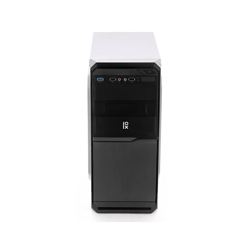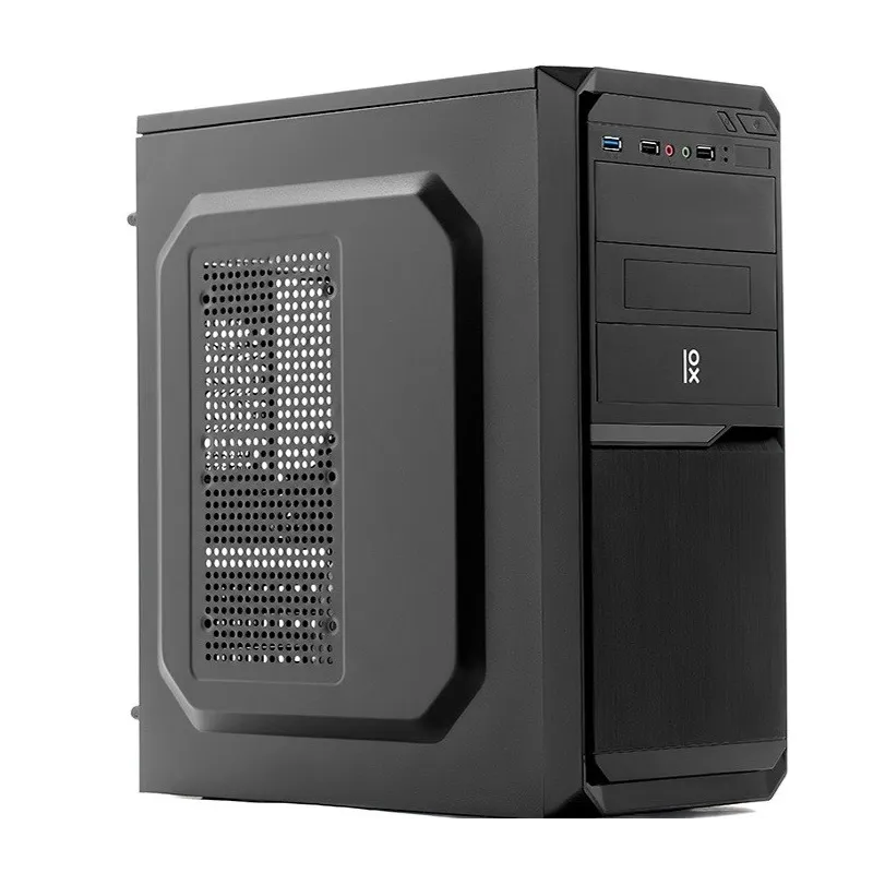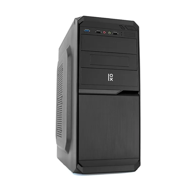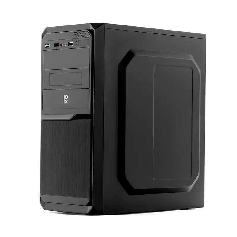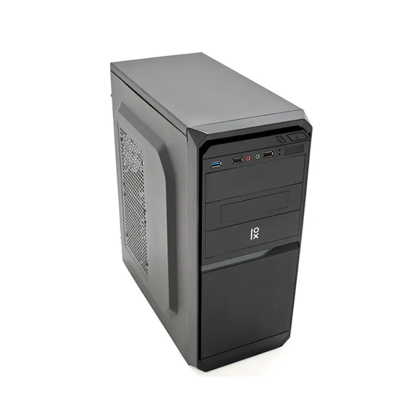 El diseño del chasis se enfoca en la funcionalidad y simplicidad, adecuado para configuraciones de hogar y oficina. Aunque no incluye filtros de polvo ni bahías adicionales, ofrece una solución eficiente y práctica para tus necesidades informáticas.