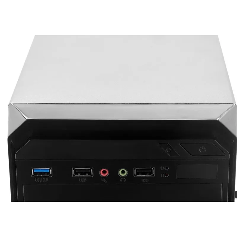 En cuanto a conectividad, el chasis dispone de 2 puertos USB 2.0 y 1 puerto USB 3.0, junto con conexiones de audio y micrófono, proporcionando acceso fácil y rápido para tus dispositivos externos. No incluye botones de LED ni de reset.
