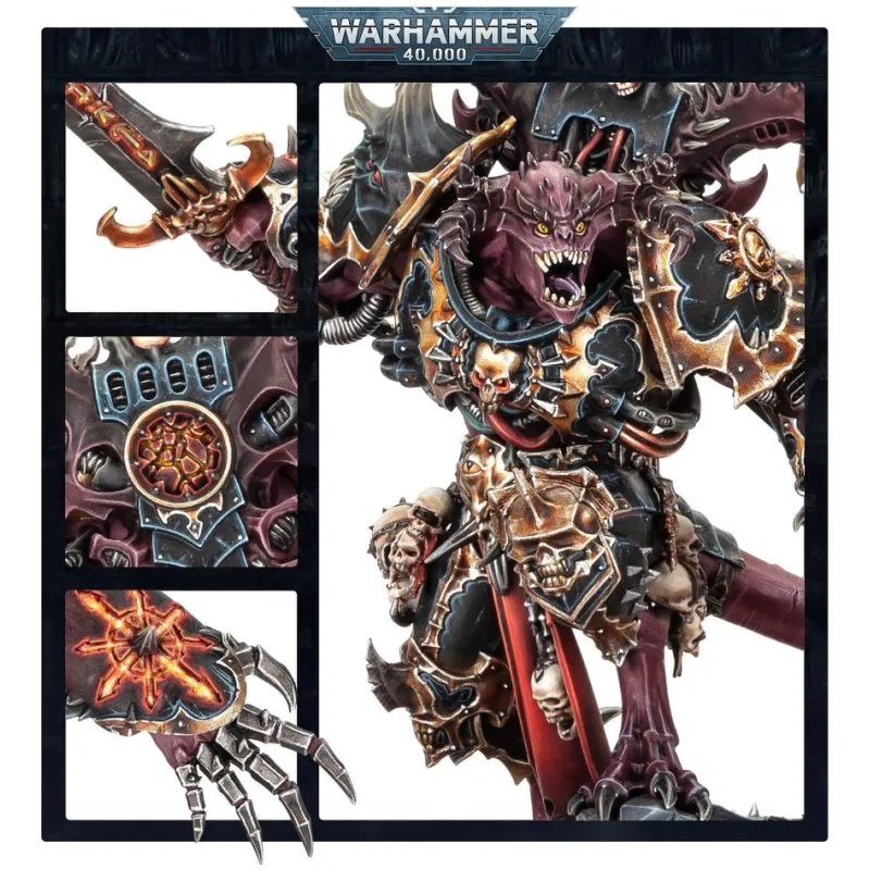 Encaja muy bien si buscas una miniatura de mando poderosa y vistosa que pueda ocupar el centro visual y táctico de tu fuerza del Caos en la mesa.