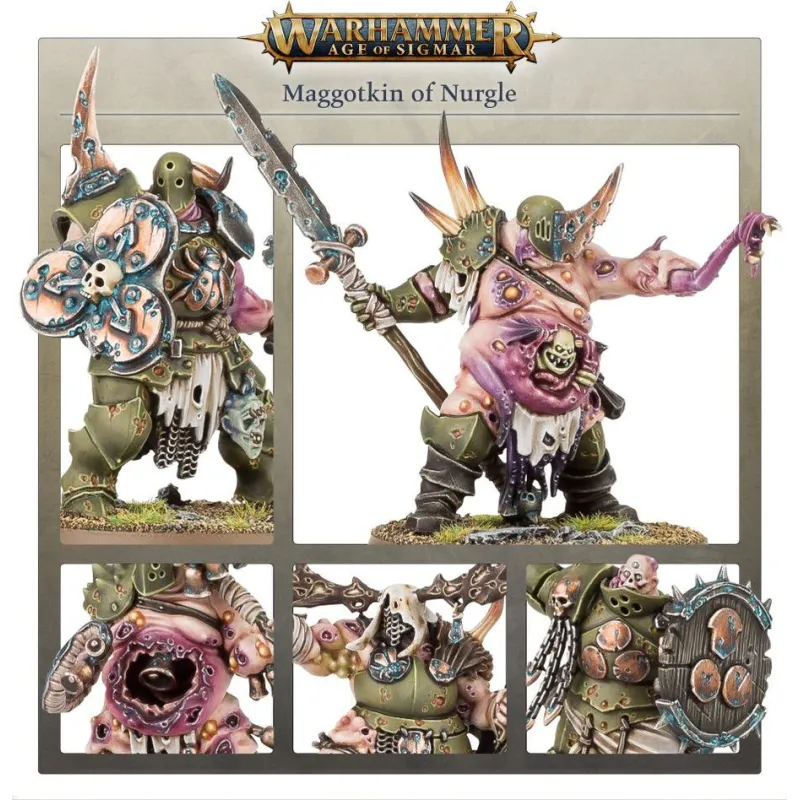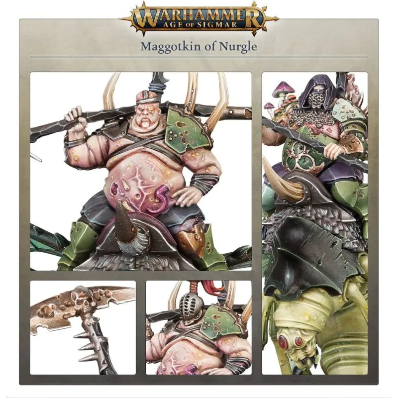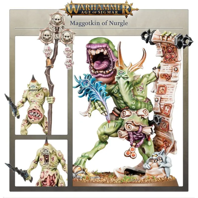Todas las miniaturas de la caja pertenecen a la facción Maggotkin de Nurgle, una de las fuerzas del Gran Dios del Caos Nurgle en Age of Sigmar.