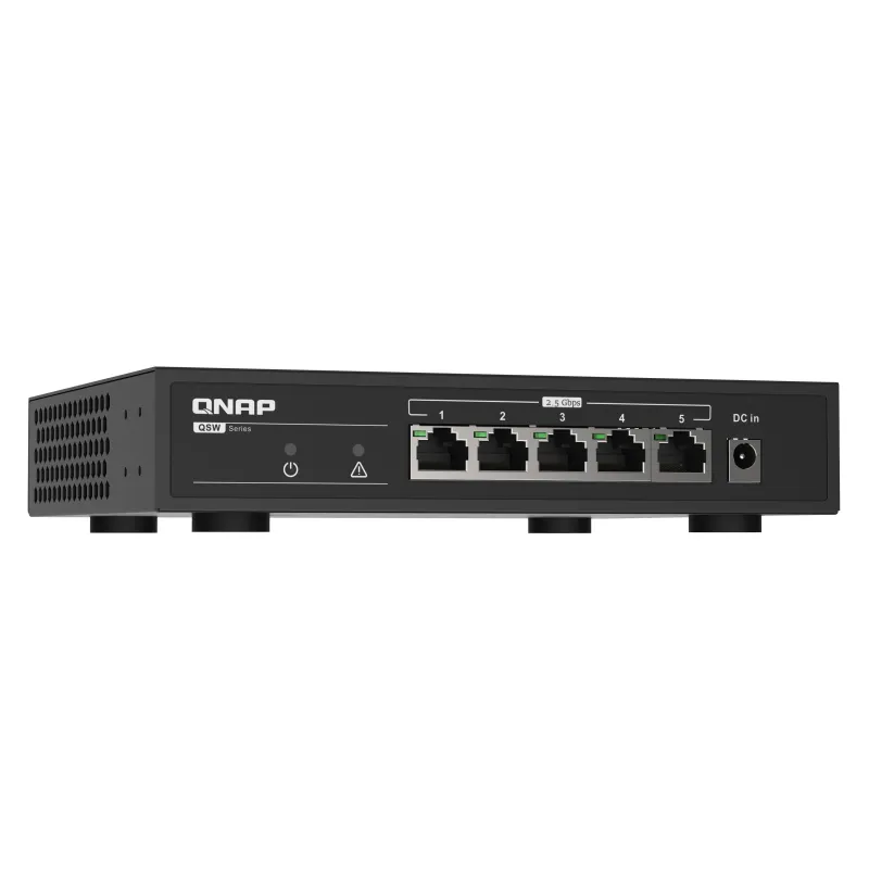 HASTA 2,5 VECES MÁS RÁPIDA: El QSW-1105-5T cuenta con cinco puertos 2,5GbE que admiten los dispositivos Ethernet existentes y también están preparados para dispositivos 2,5GbE de próxima generación. Independientemente de si va a actualizar su red de uso personal como si es su red empresarial la que desea mejorar, el QSW-1105-5T proporciona una base sólida para permitir una productividad y un entretenimiento más rápidos y fluidos.