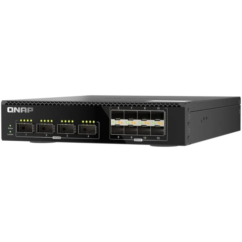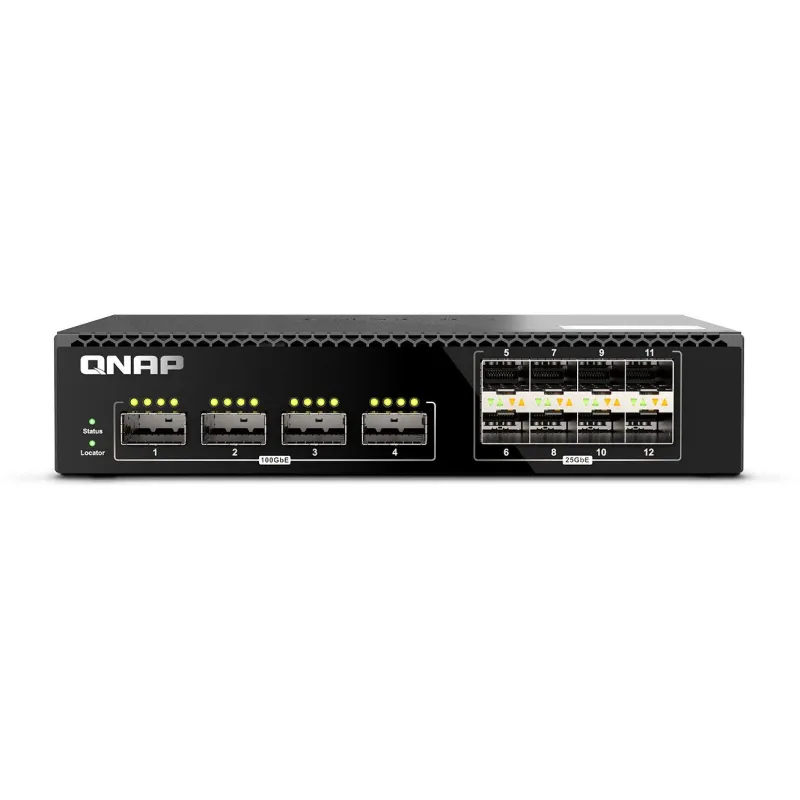 El QSW-M7308R-4X es un switch gestionable 100GbE de Capa 2 con cuatro puertos QSFP28 100GbE y ocho puertos SFP28 25GbE. El QSW-M7308R-4X se puede conectar a servidores 100G/25G y NAS en salas de servidores o bien conectarse a switches 100G/25G para acelerar el almacenamiento de alta velocidad, la edición de vídeo, la virtualización y las aplicaciones de IA. Con un precio competitivo y distintas funciones de ahorro de espacio, el QSW-M7308R-4X permite a las empresas actualizar rápidamente a una infraestructura de red troncal de ultra-alta velocidad para crear soluciones de almacenamiento y transmisión de red de ultra-alta velocidad. El QSW-M7308R-4X se fabrica en Taiwán (MIT) y proporciona una solución de red fiable y de alta calidad.