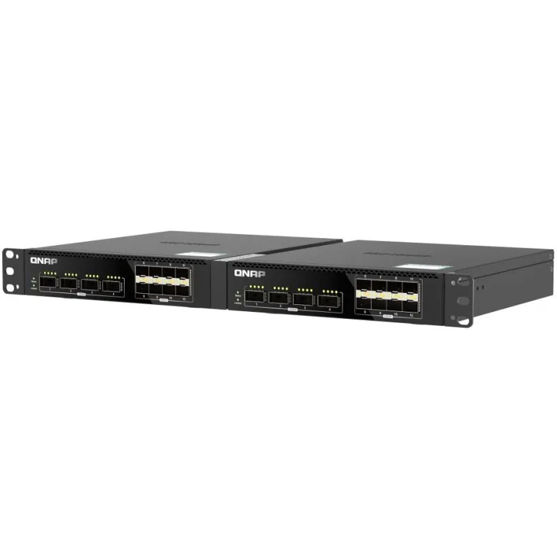 DISEÑO DE ANCHURA MEDIA, DOS MODELOS EN 1U: Con un diseño de montaje en rack de anchura media, se puede instalar un QSW-M7308R-4X en el espacio de un rack de 1U (como el QSW-M7308R-4X y el QSW-M3216R-8S8T) para ahorrar espacio físico y mantener los cables organizados.