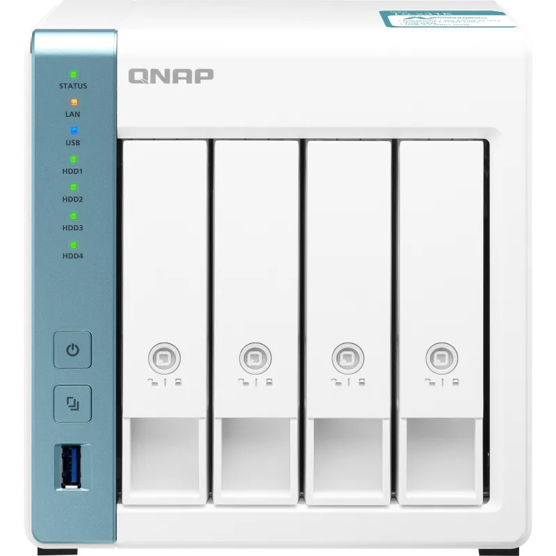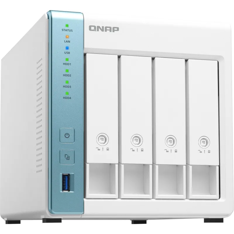 El TS-431K es un NAS de cuatro núcleos de alto rendimiento diseñado para ofrecer un almacenamiento fiable en una nube personal y doméstica. Equipado con un procesador de cuatro núcleos a 1.7 GHz y 1 GB de RAM, este NAS de 4 bahías permite almacenar de forma segura sus archivos y datos importantes, además de compartirlos fácilmente con amigos y familiares. Su diseño compacto y minimalista en color blanco puro se integra perfectamente en cualquier hogar, ocupando muy poco espacio. Las bandejas de unidades bloqueables garantizan la seguridad de los datos al evitar extracciones accidentales.