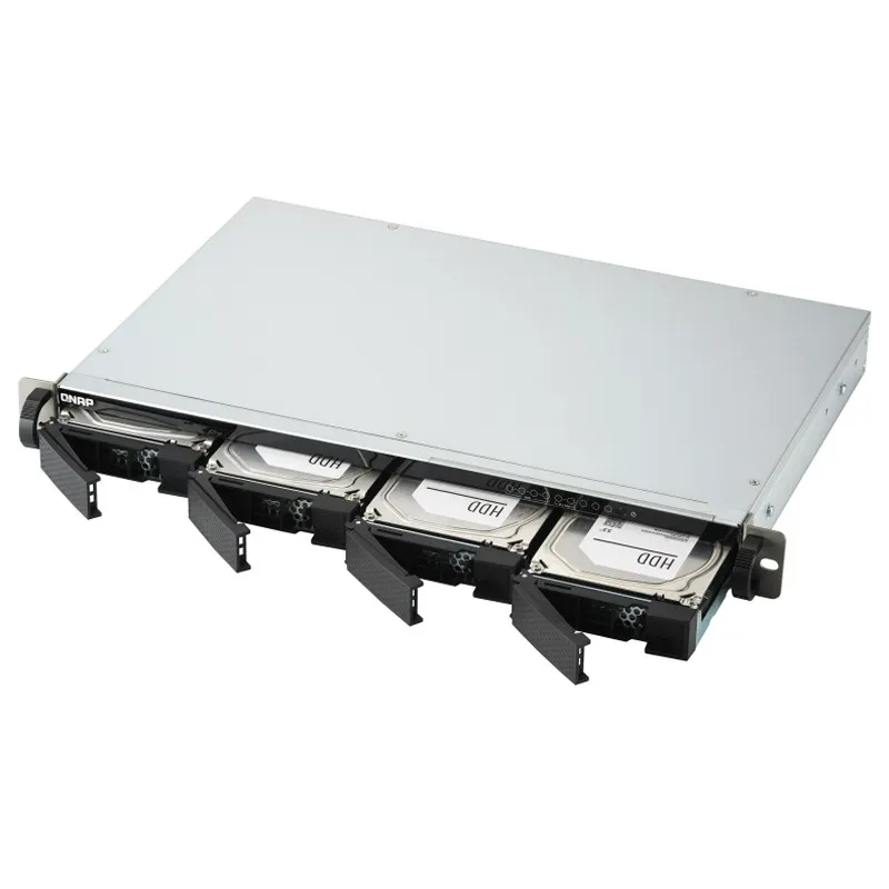 TODO LO QUE NECESITAS EN UN SOLO CHASIS: Tiene cuatro bahías para discos duros SATA 6 Gb/s, que te permiten ampliar tu capacidad de almacenamiento según tus necesidades. También dispone de dos ranuras para SSD M.2 2280 SATA 6Gb/s, que te ayudan a mejorar el rendimiento IOPS y a acelerar la caché SSD. Y si necesitas más espacio, puedes conectar las unidades de expansión de QNAP para aumentar tu volumen de datos.